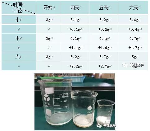 步骤一:用药匙分别取3g的氯化钙干燥剂放入3个口径不同的烧杯。